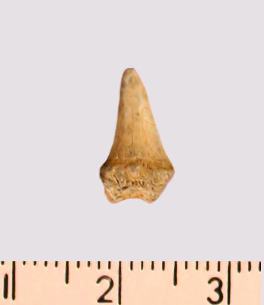 Зуб (фрагмент). Акула. Lamniformes gen. et sp. indet. Классификация: Хордовые Chordata, Позвоночные Vertebrata, Хрящевые рыбы Chondrichthyes, Пластиножаберные Elasmobranchii