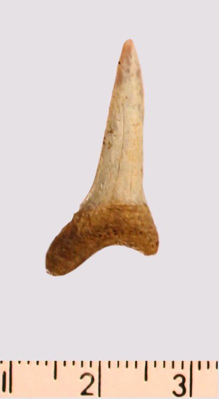 Зуб. Акула. Hispidaspis gigas (Woodward, 1889). Классификация: Хордовые Chordata, Позвоночные Vertebrata, Хрящевые рыбы Chondrichthyes, Пластиножаберные Elasmobranchii