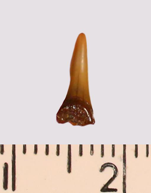 Зуб (фрагмент). Акула. Odontaspis macrorhiza (Cope) Leriche, 1902. Классификация: Хордовые Chordata, Позвоночные Vertebrata, Хрящевые рыбы Chondrichthyes, Пластиножаберные Elasmobranchii