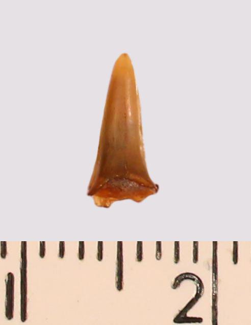 Зуб (фрагмент). Акула. Odontaspis macrorhiza (Cope) Leriche, 1902. Классификация: Хордовые Chordata, Позвоночные Vertebrata, Хрящевые рыбы Chondrichthyes, Пластиножаберные Elasmobranchii