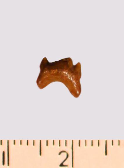 Зуб (фрагмент). Акула. Odontaspis macrorhiza (Cope) Leriche, 1902. Классификация: Хордовые Chordata, Позвоночные Vertebrata, Хрящевые рыбы Chondrichthyes, Пластиножаберные Elasmobranchii