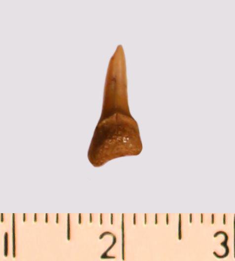 Зуб. Акула. Odontaspis macrorhiza (Cope) Leriche, 1902. Классификация: Хордовые Chordata, Позвоночные Vertebrata, Хрящевые рыбы Chondrichthyes, Пластиножаберные Elasmobranchii
