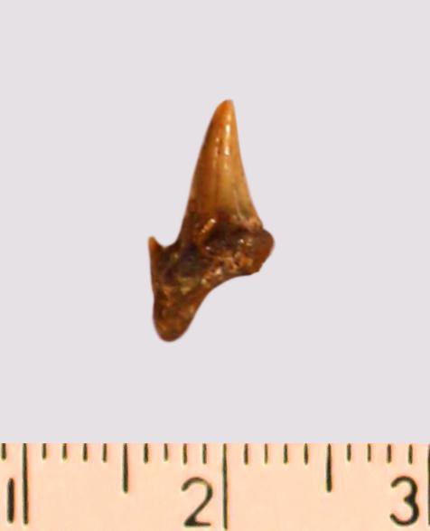 Зуб. Акула. Odontaspis macrorhiza (Cope) Leriche, 1902. Классификация: Хордовые Chordata, Позвоночные Vertebrata, Хрящевые рыбы Chondrichthyes, Пластиножаберные Elasmobranchii