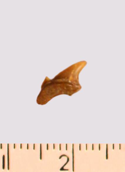 Зуб. Акула. Odontaspis macrorhiza (Cope) Leriche, 1902. Классификация: Хордовые Chordata, Позвоночные Vertebrata, Хрящевые рыбы Chondrichthyes, Пластиножаберные Elasmobranchii