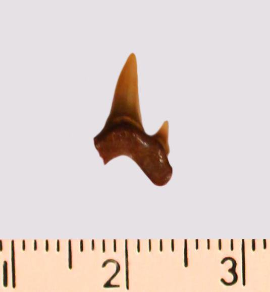 Зуб. Акула. Odontaspis macrorhiza (Cope) Leriche, 1902. Классификация: Хордовые Chordata, Позвоночные Vertebrata, Хрящевые рыбы Chondrichthyes, Пластиножаберные Elasmobranchii