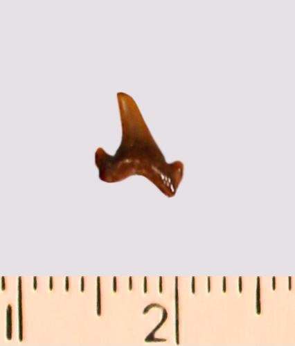 Зуб. Акула. Odontaspis striatula Dalinkevicius, 1935. Классификация: Хордовые Chordata, Позвоночные Vertebrata, Хрящевые рыбы Chondrichthyes, Пластиножаберные Elasmobranchii