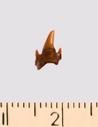 Зуб. Акула. Odontaspis macrorhiza (Cope) Leriche, 1902. Классификация: Хордовые Chordata, Позвоночные Vertebrata, Хрящевые рыбы Chondrichthyes, Пластиножаберные Elasmobranchii