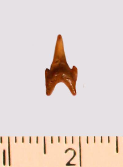 Зуб. Акула. Odontaspis macrorhiza (Cope) Leriche, 1902. Классификация: Хордовые Chordata, Позвоночные Vertebrata, Хрящевые рыбы Chondrichthyes, Пластиножаберные Elasmobranchii
