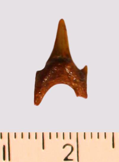 Зуб. Акула. Odontaspis macrorhiza (Cope) Leriche, 1902. Классификация: Хордовые Chordata, Позвоночные Vertebrata, Хрящевые рыбы Chondrichthyes, Пластиножаберные Elasmobranchii