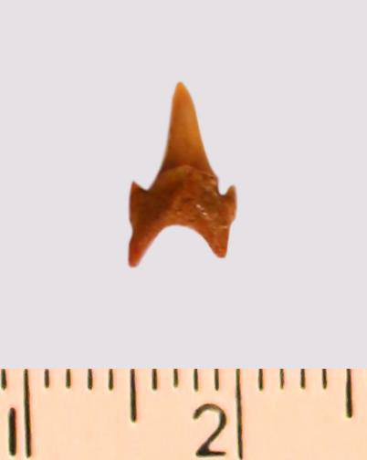 Зуб. Акула. Odontaspis macrorhiza (Cope) Leriche, 1902. Классификация: Хордовые Chordata, Позвоночные Vertebrata, Хрящевые рыбы Chondrichthyes, Пластиножаберные Elasmobranchii