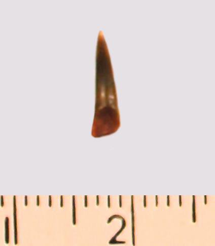 Зуб (фрагмент). Акула. Odontaspis striatula Dalinkevicius, 1935. Классификация: Хордовые Chordata, Позвоночные Vertebrata, Хрящевые рыбы Chondrichthyes, Пластиножаберные Elasmobranchii