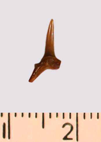 Зуб. Акула. Odontaspis striatula Dalinkevicius, 1935. Классификация: Хордовые Chordata, Позвоночные Vertebrata, Хрящевые рыбы Chondrichthyes, Пластиножаберные Elasmobranchii