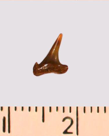 Зуб. Акула. Odontaspis striatula Dalinkevicius, 1935. Классификация: Хордовые Chordata, Позвоночные Vertebrata, Хрящевые рыбы Chondrichthyes, Пластиножаберные Elasmobranchii