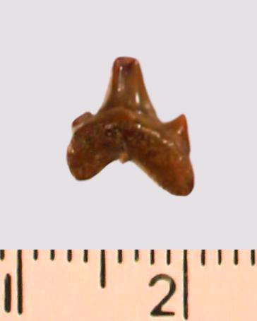 Зуб. Акула. Odontaspis macrorhiza (Cope) Leriche, 1902. Классификация: Хордовые Chordata, Позвоночные Vertebrata, Хрящевые рыбы Chondrichthyes, Пластиножаберные Elasmobranchii