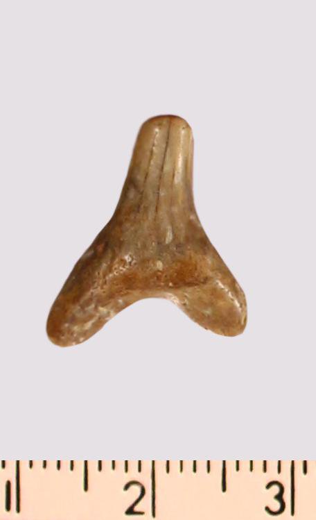 Зуб. Акула. Scapanorhynchus gigas Woodward 1889. Классификация: Хордовые Chordata, Позвоночные Vertebrata, Хрящевые рыбы Chondrichthyes, Пластиножаберные Elasmobranchii