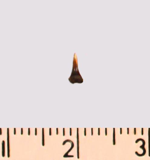 Зуб (фрагмент). Акула. Synechodus sp. Классификация: Хордовые Chordata, Позвоночные Vertebrata, Хрящевые рыбы Chondrichthyes, Пластиножаберные Elasmobranchii