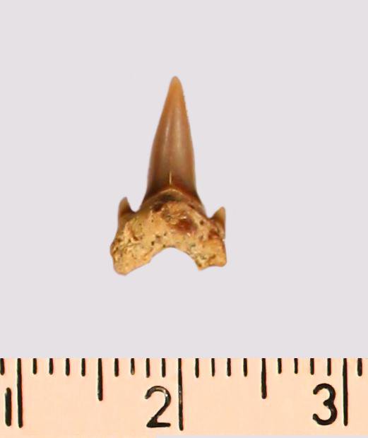 Зуб. Акула. Archaeolamna cf. kopingensis (Davis, 1890). Классификация: Хордовые Chordata, Позвоночные Vertebrata, Хрящевые рыбы Chondrichthyes, Пластиножаберные Elasmobranchii