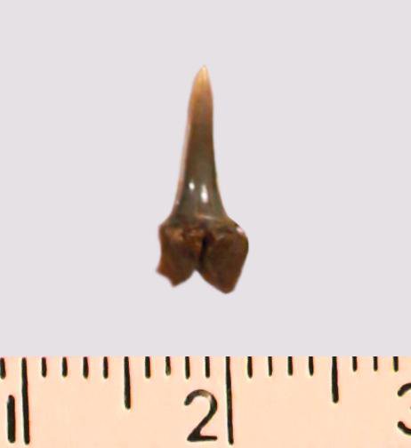 Зуб. Акула. Eostriatolamia subulata (Agassiz, 1843). Классификация: Хордовые Chordata, Позвоночные Vertebrata, Хрящевые рыбы Chondrichthyes, Пластиножаберные Elasmobranchii