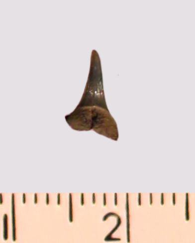 Зуб. Акула. Eostriatolamia subulata (Agassiz, 1843). Классификация: Хордовые Chordata, Позвоночные Vertebrata, Хрящевые рыбы Chondrichthyes, Пластиножаберные Elasmobranchii