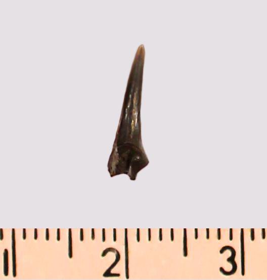 Зуб (фрагмент). Акула. Eostriatolamia subulata (Agassiz, 1843). Классификация: Хордовые Chordata, Позвоночные Vertebrata, Хрящевые рыбы Chondrichthyes, Пластиножаберные Elasmobranchii