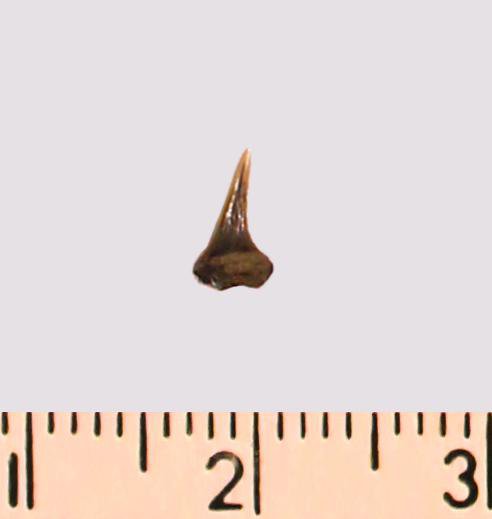 Зуб (фрагмент). Акула. Eostriatolamia subulata (Agassiz, 1843). Классификация: Хордовые Chordata, Позвоночные Vertebrata, Хрящевые рыбы Chondrichthyes, Пластиножаберные Elasmobranchii