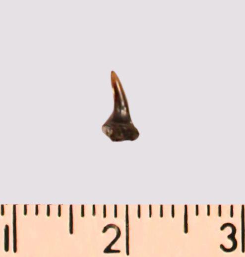 Зуб (фрагмент). Акула. Eostriatolamia subulata (Agassiz, 1843). Классификация: Хордовые Chordata, Позвоночные Vertebrata, Хрящевые рыбы Chondrichthyes, Пластиножаберные Elasmobranchii