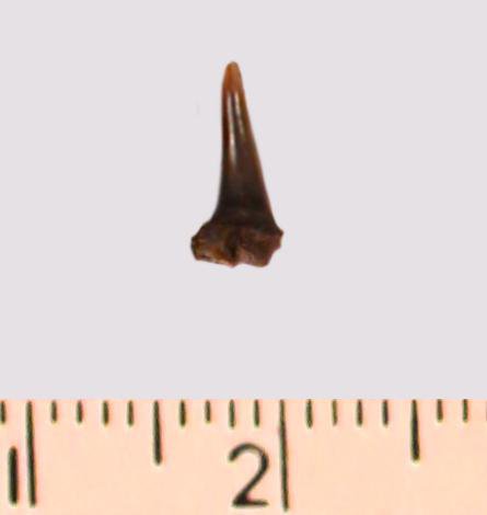 Зуб (фрагмент). Акула. Eostriatolamia subulata (Agassiz, 1843). Классификация: Хордовые Chordata, Позвоночные Vertebrata, Хрящевые рыбы Chondrichthyes, Пластиножаберные Elasmobranchii