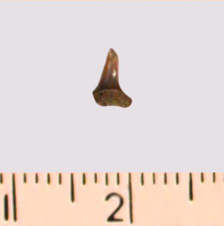 Зуб (фрагмент). Акула. Eostriatolamia subulata (Agassiz, 1843). Классификация: Хордовые Chordata, Позвоночные Vertebrata, Хрящевые рыбы Chondrichthyes, Пластиножаберные Elasmobranchii