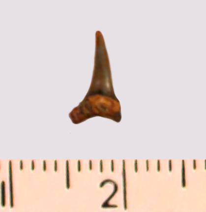 Зуб. Акула. Eostriatolamia subulata (Agassiz, 1843). Классификация: Хордовые Chordata, Позвоночные Vertebrata, Хрящевые рыбы Chondrichthyes, Пластиножаберные Elasmobranchii