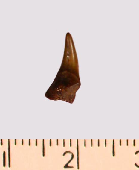 Зуб (фрагмент). Акула. Odontaspis macrorhiza (Cope) Leriche, 1902. Классификация: Хордовые Chordata, Позвоночные Vertebrata, Хрящевые рыбы Chondrichthyes, Пластиножаберные Elasmobranchii