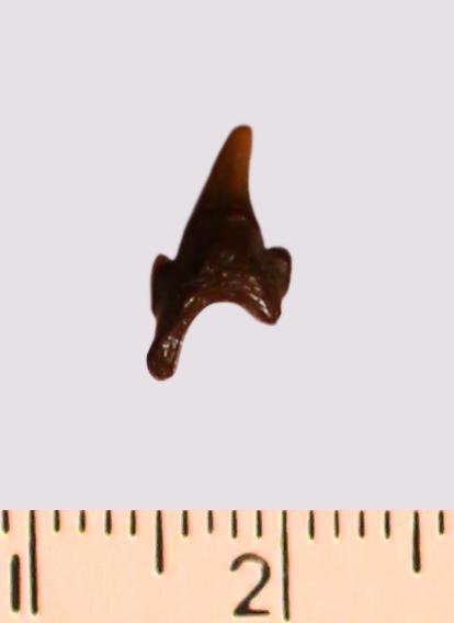 Зуб. Акула. Odontaspis macrorhiza (Cope) Leriche, 1902. Классификация: Хордовые Chordata, Позвоночные Vertebrata, Хрящевые рыбы Chondrichthyes, Пластиножаберные Elasmobranchii