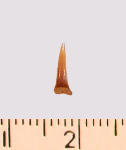 Зуб (фрагмент). Акула. Odontaspis striatula Dalinkevicius, 1935. Классификация: Хордовые Chordata, Позвоночные Vertebrata, Хрящевые рыбы Chondrichthyes, Пластиножаберные Elasmobranchii