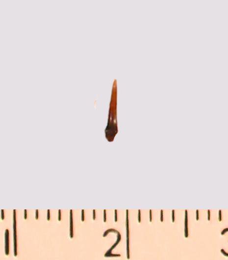 Зуб (фрагмент). Акула. Odontaspis striatula Dalinkevicius, 1935. Классификация: Хордовые Chordata, Позвоночные Vertebrata, Хрящевые рыбы Chondrichthyes, Пластиножаберные Elasmobranchii