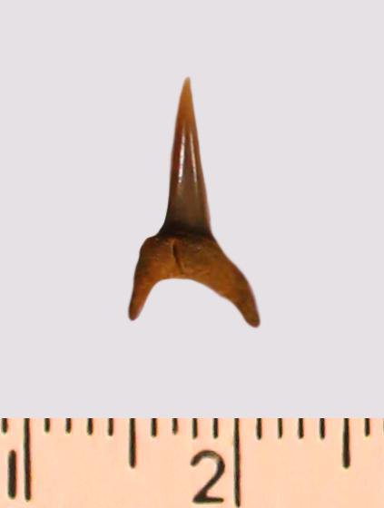 Зуб. Акула. Odontaspis striatula Dalinkevicius, 1935. Классификация: Хордовые Chordata, Позвоночные Vertebrata, Хрящевые рыбы Chondrichthyes, Пластиножаберные Elasmobranchii