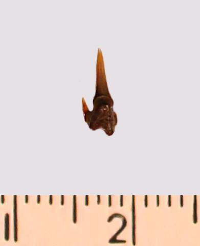 Зуб. Акула. Odontaspis striatula Dalinkevicius, 1935. Классификация: Хордовые Chordata, Позвоночные Vertebrata, Хрящевые рыбы Chondrichthyes, Пластиножаберные Elasmobranchii