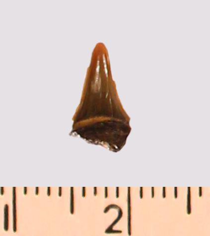 Зуб (фрагмент). Акула. Odontaspis macrorhiza (Cope) Leriche, 1902. Классификация: Хордовые Chordata, Позвоночные Vertebrata, Хрящевые рыбы Chondrichthyes, Пластиножаберные Elasmobranchii