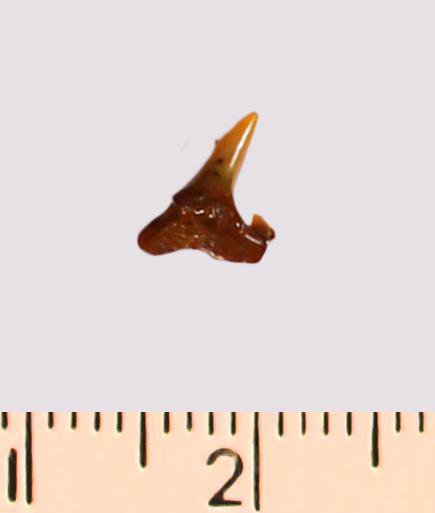 Зуб. Акула. Odontaspis macrorhiza (Cope) Leriche, 1902. Классификация: Хордовые Chordata, Позвоночные Vertebrata, Хрящевые рыбы Chondrichthyes, Пластиножаберные Elasmobranchii