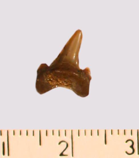 Зуб. Акула. Odontaspis macrorhiza (Cope) Leriche, 1902. Классификация: Хордовые Chordata, Позвоночные Vertebrata, Хрящевые рыбы Chondrichthyes, Пластиножаберные Elasmobranchii