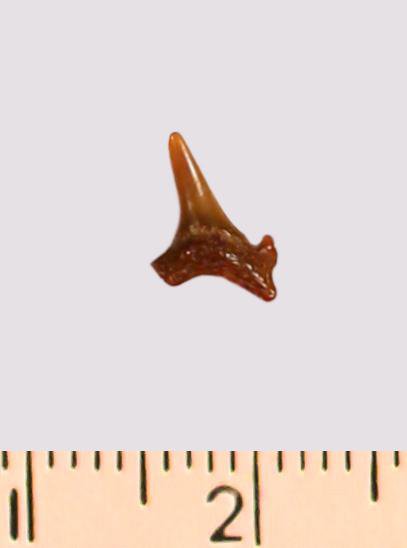 Зуб. Акула. Odontaspis striatula Dalinkevicius, 1935. Классификация: Хордовые Chordata, Позвоночные Vertebrata, Хрящевые рыбы Chondrichthyes, Пластиножаберные Elasmobranchii
