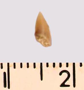 Зуб (фрагмент). Акула. Palaeoanacorax volgensis Glueckman, 1971. Классификация: Хордовые Chordata, Позвоночные Vertebrata, Хрящевые рыбы Chondrichthyes, Пластиножаберные Elasmobranchii