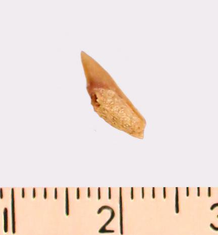 Зуб (фрагмент). Акула. Palaeoanacorax volgensis Glueckman, 1971. Классификация: Хордовые Chordata, Позвоночные Vertebrata, Хрящевые рыбы Chondrichthyes, Пластиножаберные Elasmobranchii