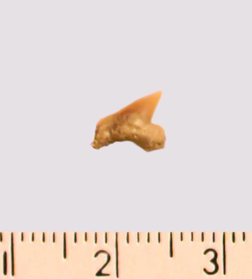 Зуб. Акула. Palaeoanacorax volgensis Glueckman, 1971. Классификация: Хордовые Chordata, Позвоночные Vertebrata, Хрящевые рыбы Chondrichthyes, Пластиножаберные Elasmobranchii