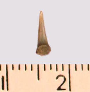 Зуб (фрагмент). Акула. Eostriatolamia gracilis (Davis, 1890). Классификация: Хордовые Chordata, Позвоночные Vertebrata, Хрящевые рыбы Chondrichthyes, Пластиножаберные Elasmobranchii