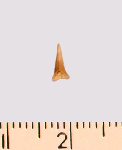 Зуб (фрагмент). Акула. Eostriatolamia gracilis (Davis, 1890). Классификация: Хордовые Chordata, Позвоночные Vertebrata, Хрящевые рыбы Chondrichthyes, Пластиножаберные Elasmobranchii