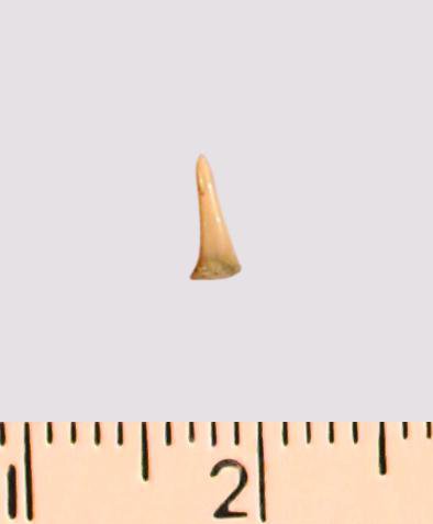 Зуб (фрагмент). Акула. Eostriatolamia gracilis (Davis, 1890). Классификация: Хордовые Chordata, Позвоночные Vertebrata, Хрящевые рыбы Chondrichthyes, Пластиножаберные Elasmobranchii
