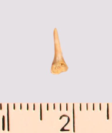Зуб (фрагмент). Акула. Eostriatolamia gracilis (Davis, 1890). Классификация: Хордовые Chordata, Позвоночные Vertebrata, Хрящевые рыбы Chondrichthyes, Пластиножаберные Elasmobranchii