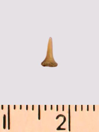 Зуб (фрагмент). Акула. Eostriatolamia gracilis (Davis, 1890). Классификация: Хордовые Chordata, Позвоночные Vertebrata, Хрящевые рыбы Chondrichthyes, Пластиножаберные Elasmobranchii