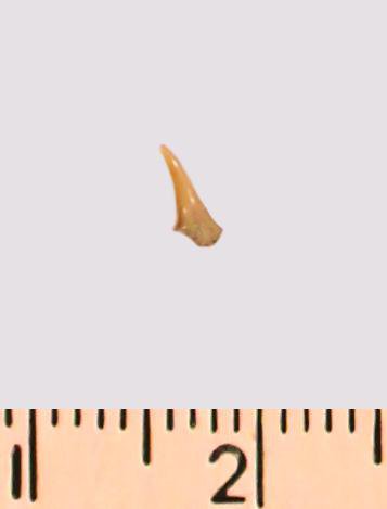Зуб (фрагмент). Акула. Eostriatolamia gracilis (Davis, 1890). Классификация: Хордовые Chordata, Позвоночные Vertebrata, Хрящевые рыбы Chondrichthyes, Пластиножаберные Elasmobranchii