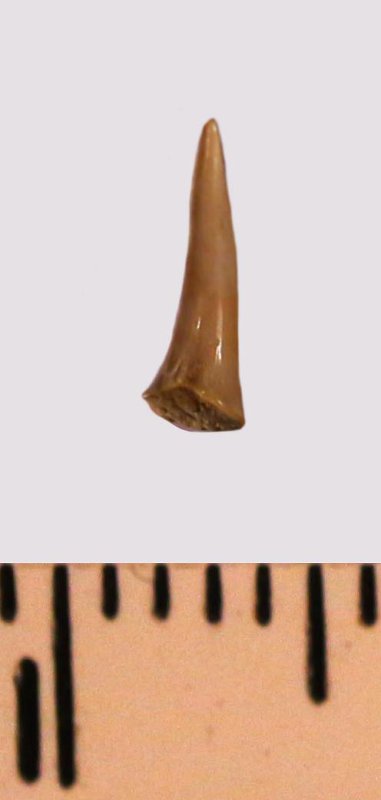 Зуб (фрагмент). Акула. Eostriatolamia gracilis (Davis, 1890). Классификация: Хордовые Chordata, Позвоночные Vertebrata, Хрящевые рыбы Chondrichthyes, Пластиножаберные Elasmobranchii