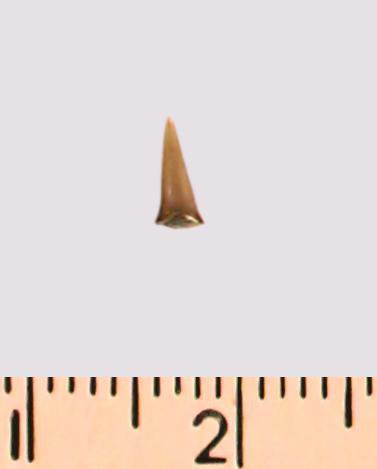 Зуб (фрагмент). Акула. Eostriatolamia gracilis (Davis, 1890). Классификация: Хордовые Chordata, Позвоночные Vertebrata, Хрящевые рыбы Chondrichthyes, Пластиножаберные Elasmobranchii